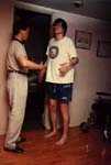 ▼因車禍癱瘓的學員從全身不能活動,到可拿拐杖站、從輪椅中自行站起、完全不用拐杖緩步行動及練氣、可自行變腰曲膝,前後歷經1年半之鍛練。