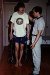 ▼因車禍癱瘓的學員從全身不能活動,到可拿拐杖站、從輪椅中自行站起、完全不用拐杖緩步行動及練氣、可自行變腰曲膝,前後歷經1年半之鍛練。