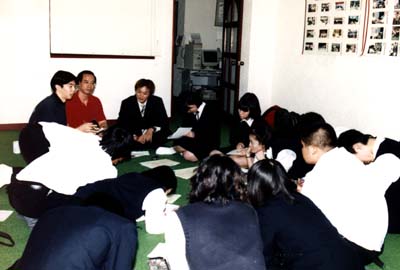 ▼日本茨城縣茗溪學園高等學校海外研修課程實習學生到本會接受氣功文化課程講習。(1998年)