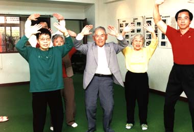 ▼86年夏,日本子彈列車國鐵局員工到台北跟隨鍾老師練習氣功。